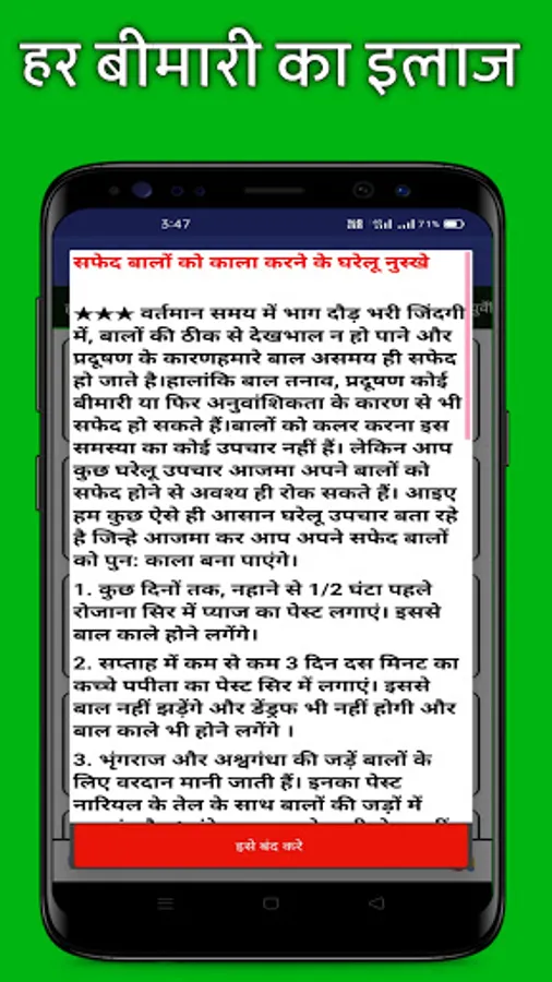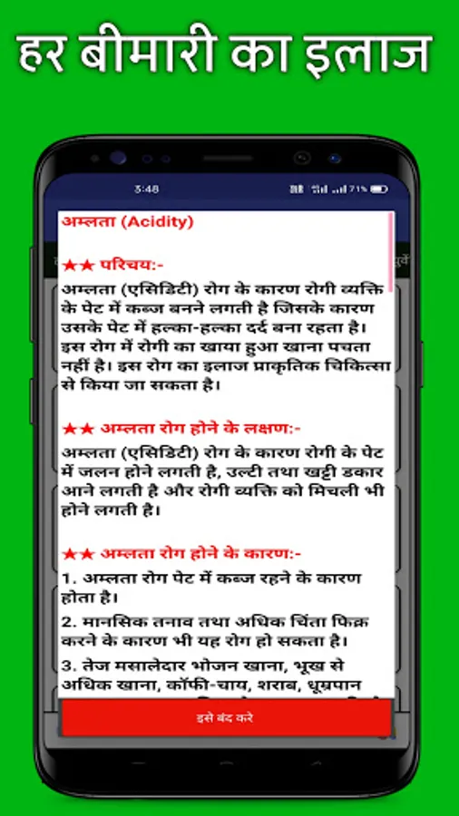 1500 bimari ka ilaj hindi - बीमारी का इलाज apps contains various diseases symptoms and its treatment. This, Bimari Ke Upchar, is one type of hand book of learn and know about the cureness (upchar) of your Diseases (bimari). And all the content in this App is in Hindi language, easily understandable by everyone.