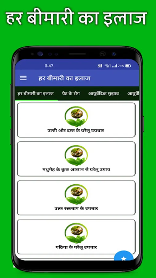 No need of Doctor for small diseases !! This Appbimari ka ilaj hindi / Bimari Ke Upchar helps you as a doctor. Would you like to think about the sickness or disease? From this app, you can easily know the guide for different illnesses in Hindi having the conclusion, cure, side effects and treatment.Thank you.