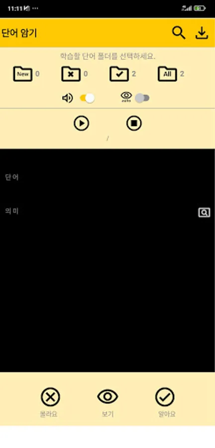 - 알아요 몰라요 선택으로 단어를 재분류하는 기능