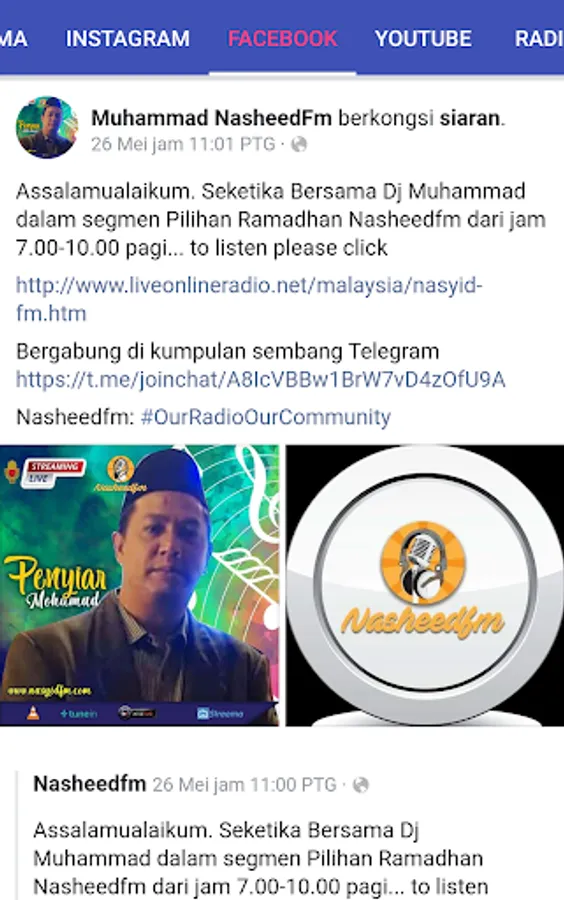 NasheedFM continues the effort. Today dated 27 April 2018 we wish to be seen again as No 1, Malaysia internet nasyid radio working in a community environment rather than commercial entity. NasheedFM community supported by Ukhtie-Nasyid and Nasyid-Kini and were one in Nasyid FM. Our official website url is http://nasyidfm.com All communication and clarification can be conducted through e-mail nasyidfm.radio@gmail.com