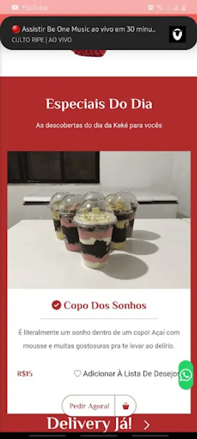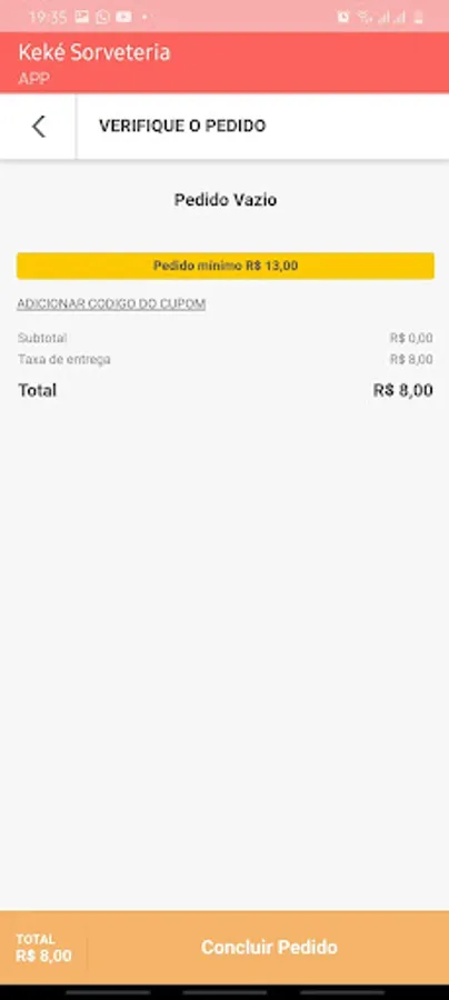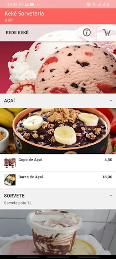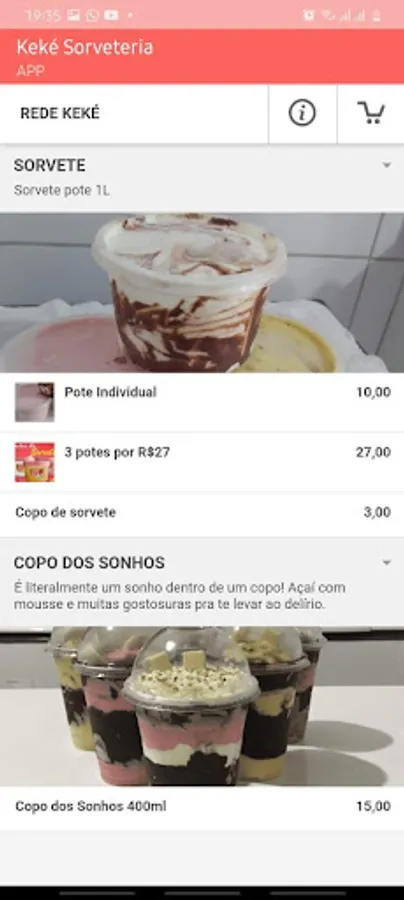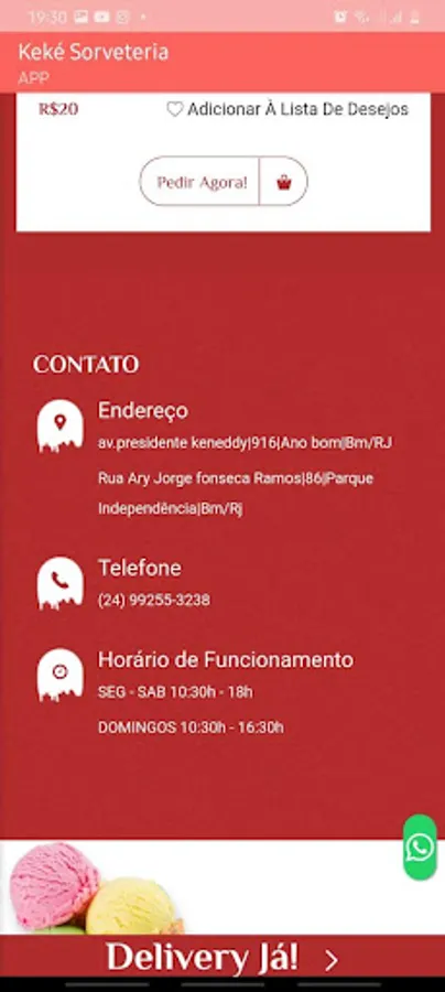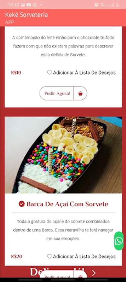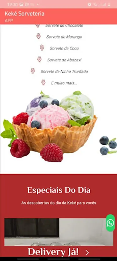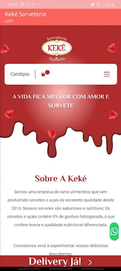 Delivery application of Keké Barra Mansa ice cream parlor.