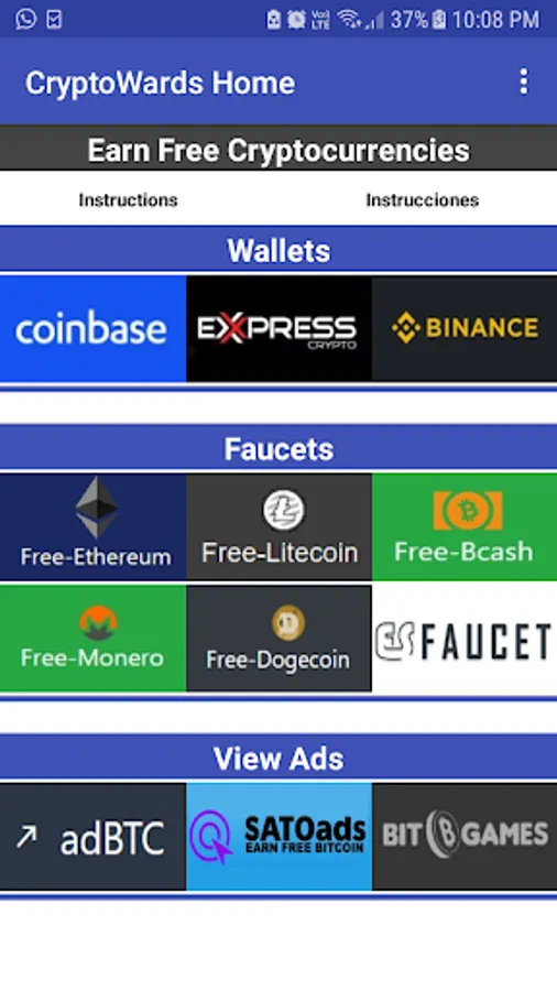 Unas recompensas se obtienen a través de Grifos (Faucets) y otras se ganan viendo anuncios (View Ads).