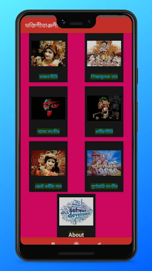 Through ভক্তিগীতাঞ্জলী (Bhaktigitanjali) app you will know how to do Upasana / Aradhana. There are many religious songs which are divided into different categories.