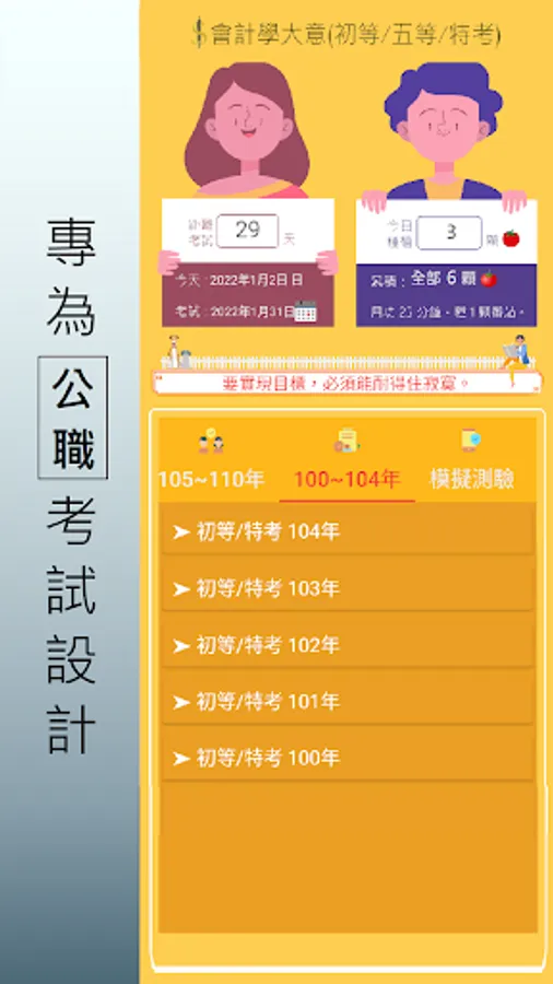 Based on the perspective of candidates, and suggestions from industry insiders, the public office-specific app has been put on the shelves after many actual tests. The functions include: countdown of exam days, reminder of Pomodoro clock, mock exam practice, custom marking questions, etc. ..