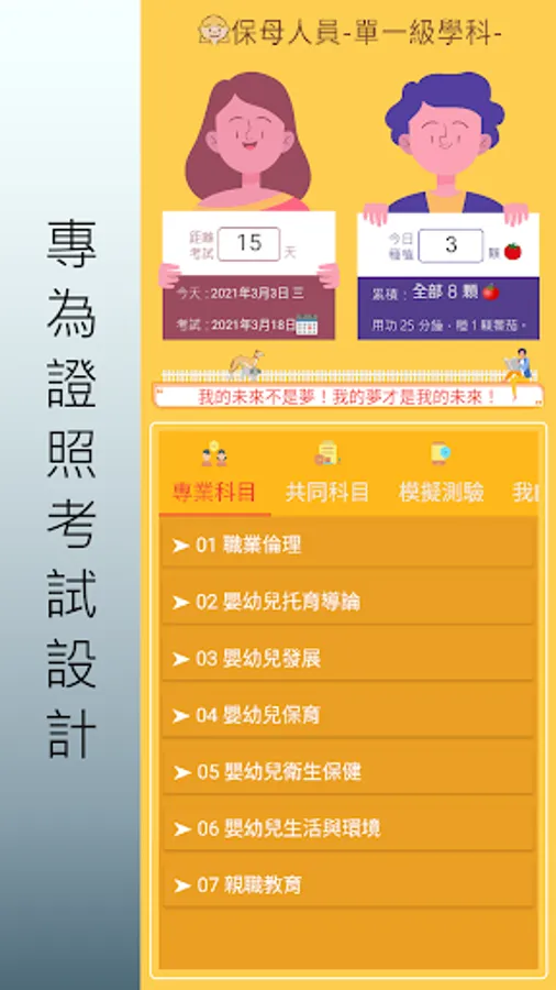 "Nanny. Technician examination question bank" is a basic professional test that people in related industries and students must pass. This test is made from the question bank published by the "Ministry of Labor". Therefore, the most effective way to prepare is to add it to the question bank. Practice all questions once.