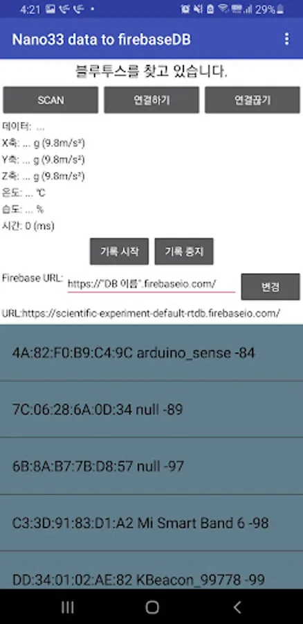 This is an application that monitors the values of the built-in acceleration sensor and temperature/humidity sensor of the BLE or Sense board among the Arduino NANO33 board series, and transmits them to firebase to make it a database (DB).