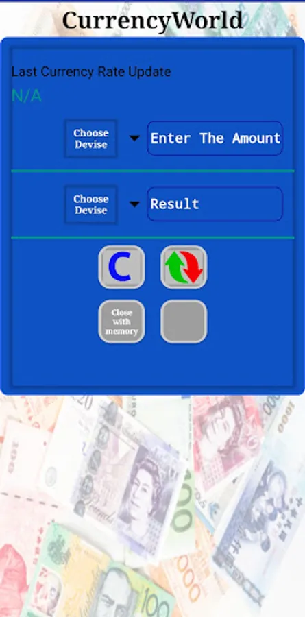 CurrencyWorld Devise allows you to convert your currencies easily, choose your currency choose the currency to convert, then an amount and CurrencyWorld Devise will immediately show you the equivalent value in another currency.