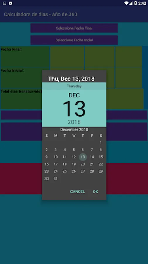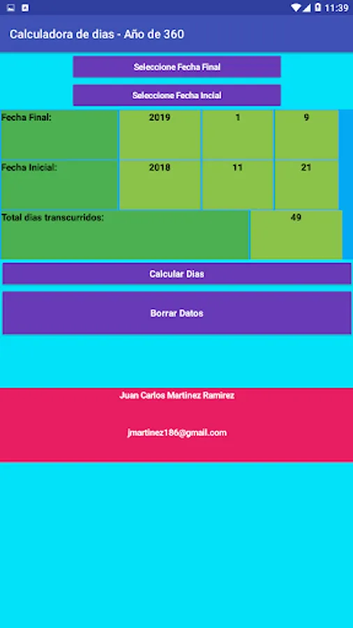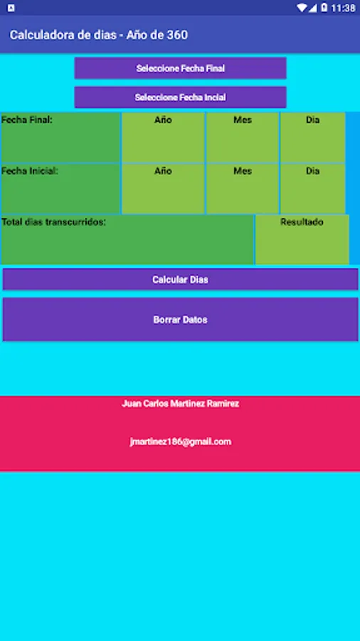 Calculator of days based on 12 months of 30 days, year of 360. Useful to perform financial calculations and labor calculations in Colombia. It is a tool for professionals in law, accounting, economics and administration. Simply select the final date and the initial date in the selectors and then click on the calculate days button. It does not require typing information.