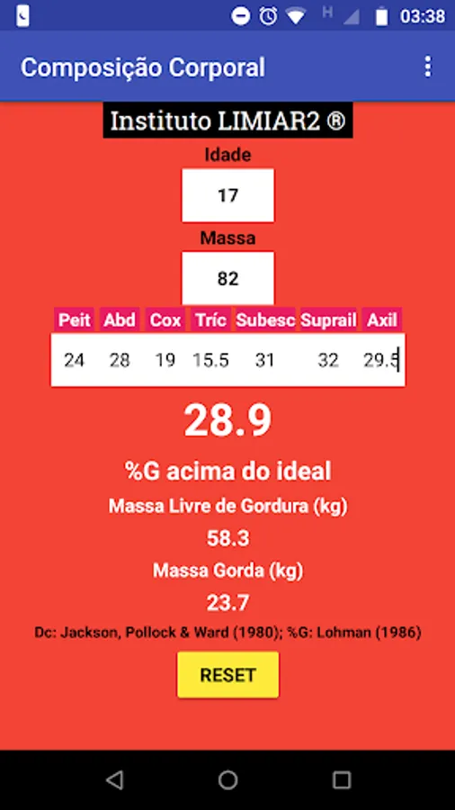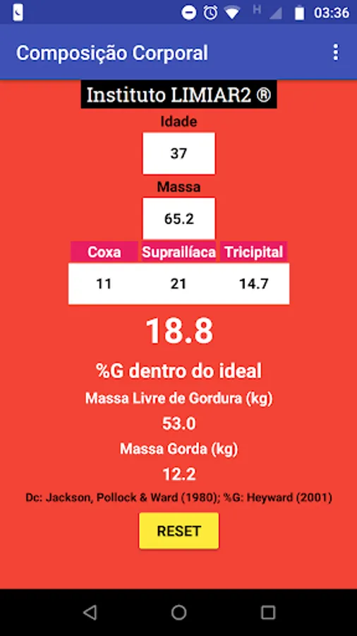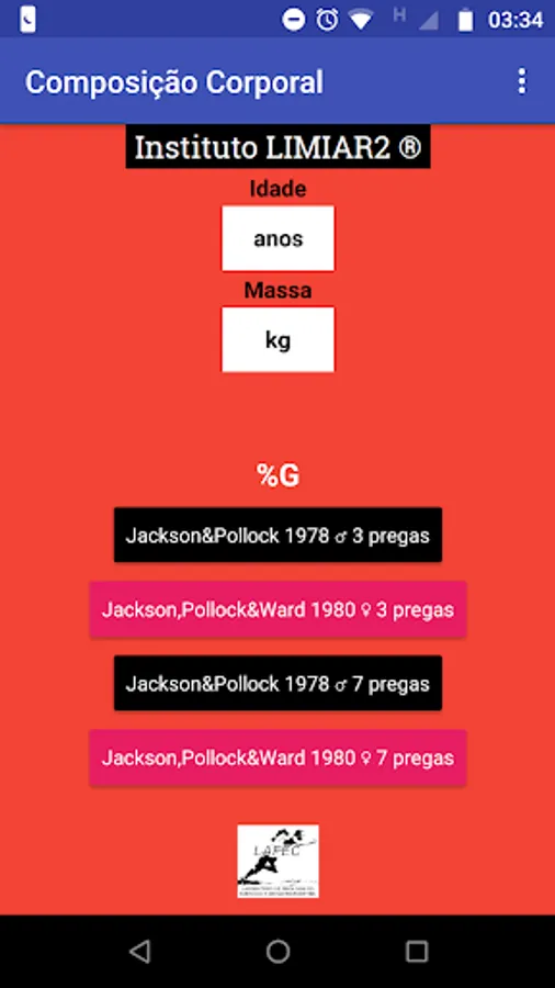 The main idea behind making this application available for Android cell phones is to make it easier for those interested to obtain fat and fat-free mass - which, in addition to being practical, can minimize the chance of possible errors when calculating everything "by hand". " (especially when the number of evaluated in the same opportunity is large).
