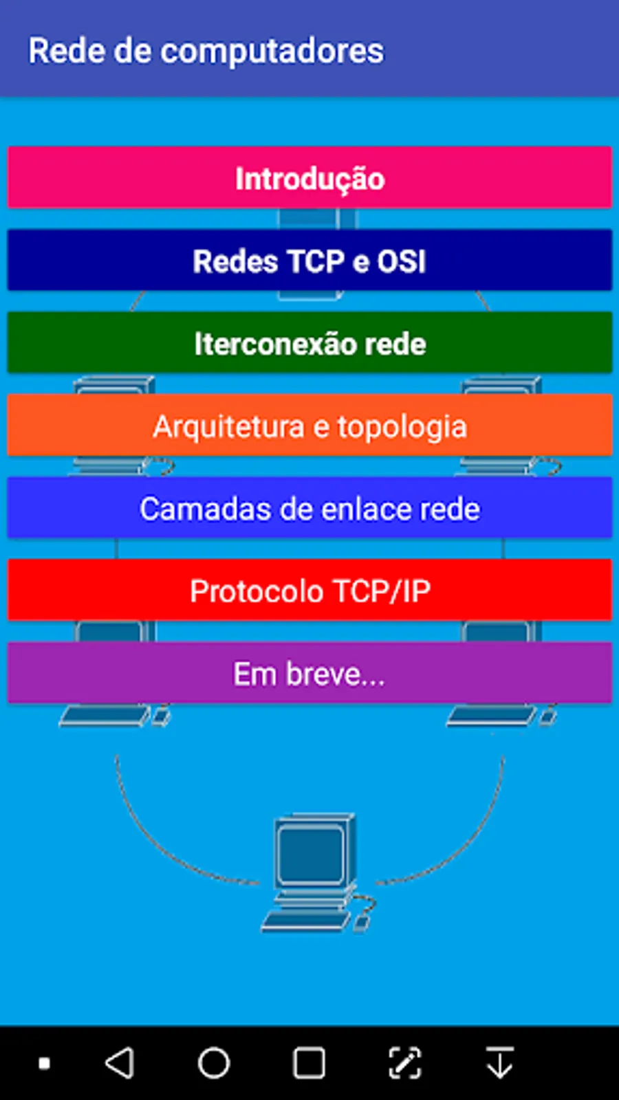 Study computer network by cell phone ..., works completely offline after unlocking content, which is done for free and quickly. All available content is simplified, with illustrations that facilitate learning, ideal for students of information technology, networks, computer science, software engineering, and hobbyists, who are always ready to learn new things.