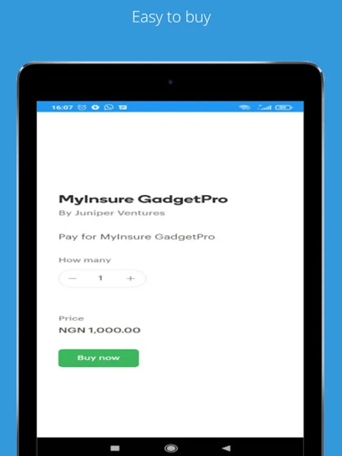 MyInsure is an insurance platform/marketplace where users can buy and manage their insurance policies. On MyInsure, users can access a wide range of insurance policies offered by various insurance companies. Policy currently available is Gadget Insurance. Policies to be sold include motor vehicle insurance, fire insurance, health insurance, etc.