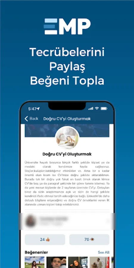 EMP Mobil can be used not only for one-way sharing, but also for us to create value for each other. At EMP Mobil, you can share your experiences with EMP members who want to contribute to their other careers, and cite and share social media content that you deem valuable with other EMP members.