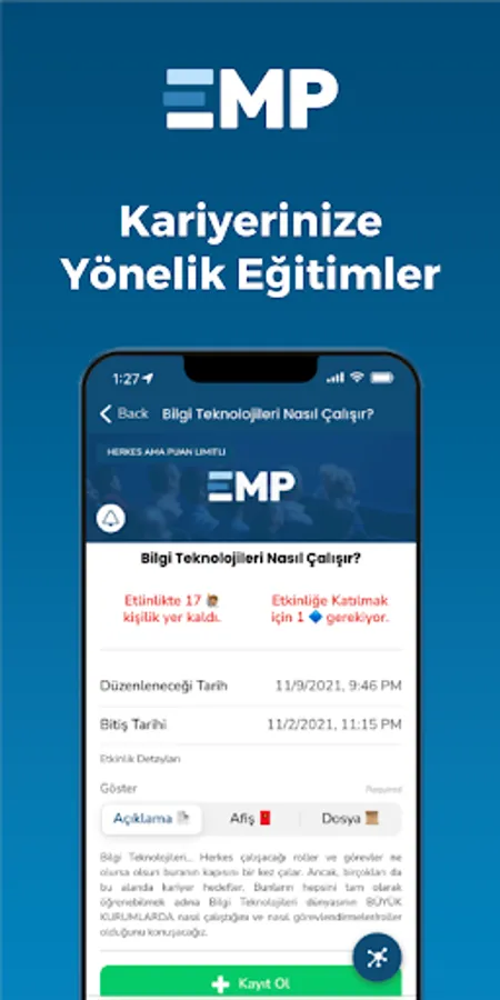 With all these posts, you collect points and with these points you can participate in the events, campaigns and organizations held within the body of EMP free of charge.