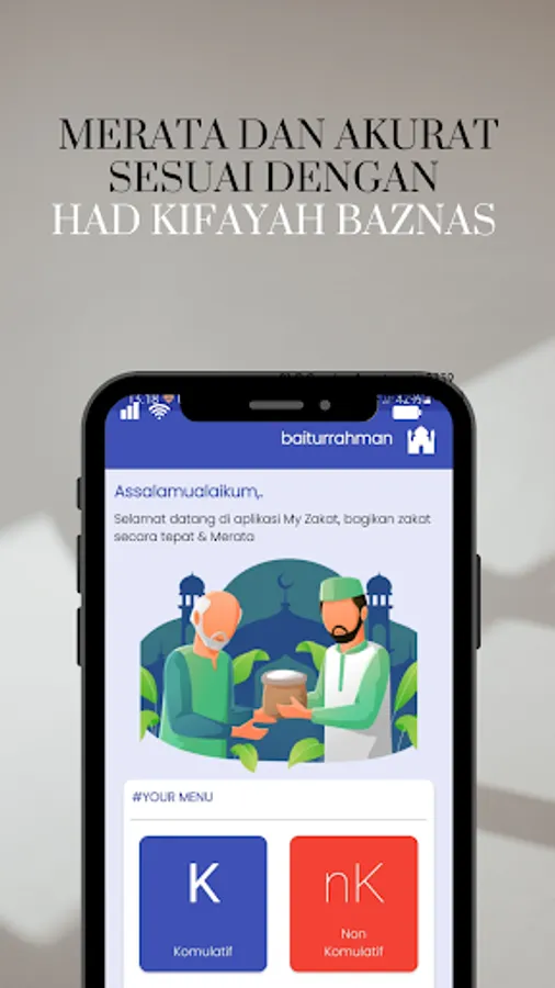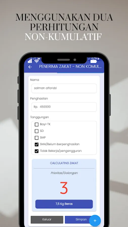 This application is a calculation of zakat fitrah to make it easier for mosque officials to distribute rice evenly, there are two methods of distributing rice, namely cumulative and non-cumulative