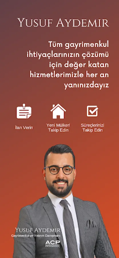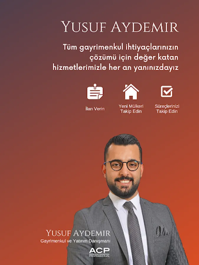With Yusuf Aydemir application, you can follow the advertisements for your land, land, villa and all other real estate needs, post advertisements and get services for the sale or rental of your properties.
