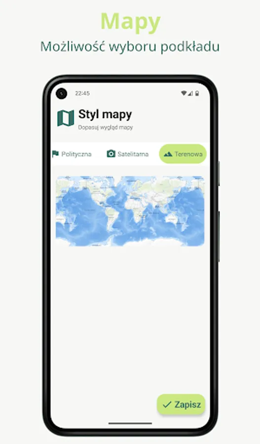 ✓ Choose your favorite map style: political, hypsometric or satellite based.