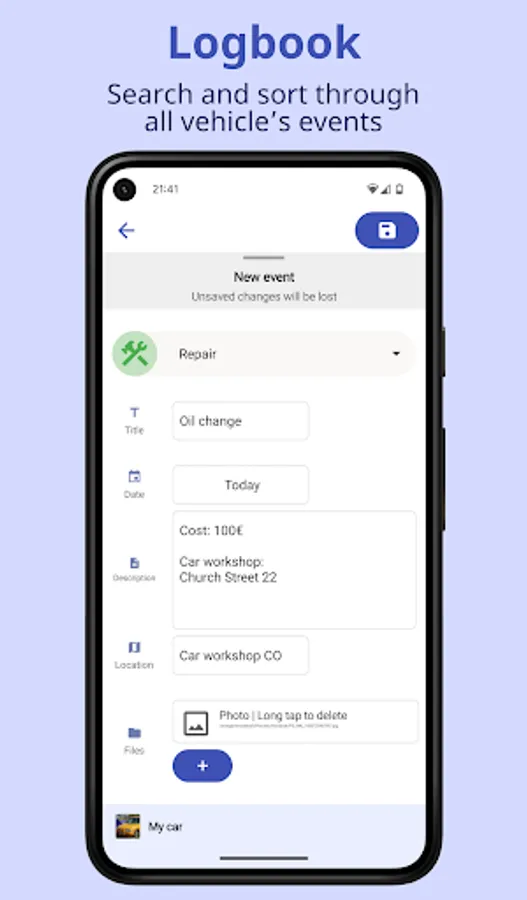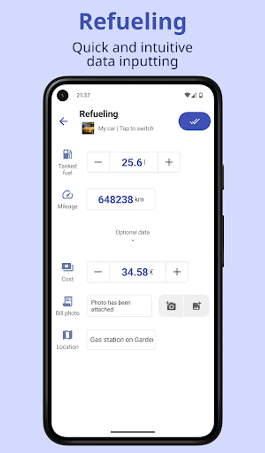 Fuel+ is a simple but yet powerful app, which will make it easier to store every data of your all vehicles!