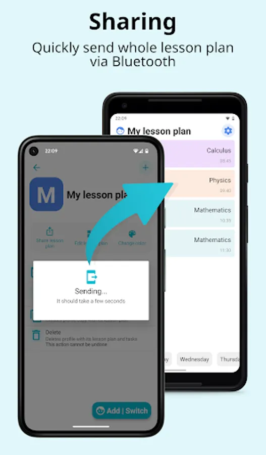 -Create diverse lesson plans for an infinite amount of profiles. For example you can have plans for all of your schedules, friends or childs.