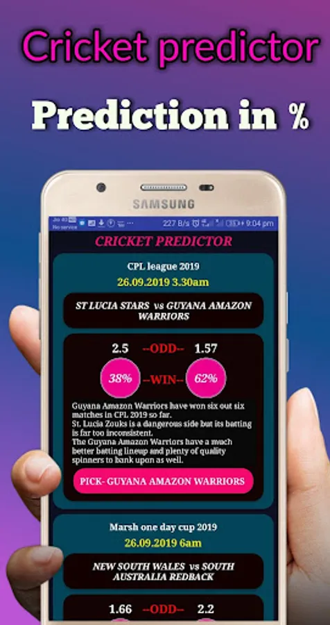 Cricket Match Prediction, Cricket Live Prediction. Disclaimer : This App is Just for Entertainment purpose only. We Predict Match Winning Team on behalf of ODDS, Ground, Pitch Report Suggestion of Experts and Experience.