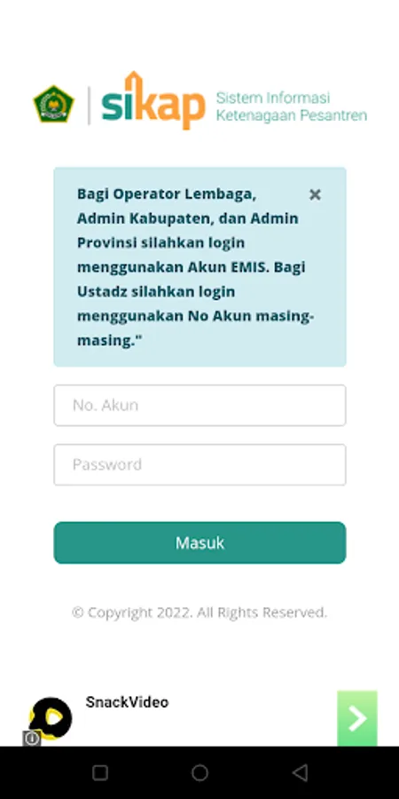 SIKAP is a special application for the workforce information system of Islamic boarding schools, Madrasah Diniyah Takmiliyah, all Islamic boarding schools and MDT in Indonesia using the Attitude application to submit their workforce data.