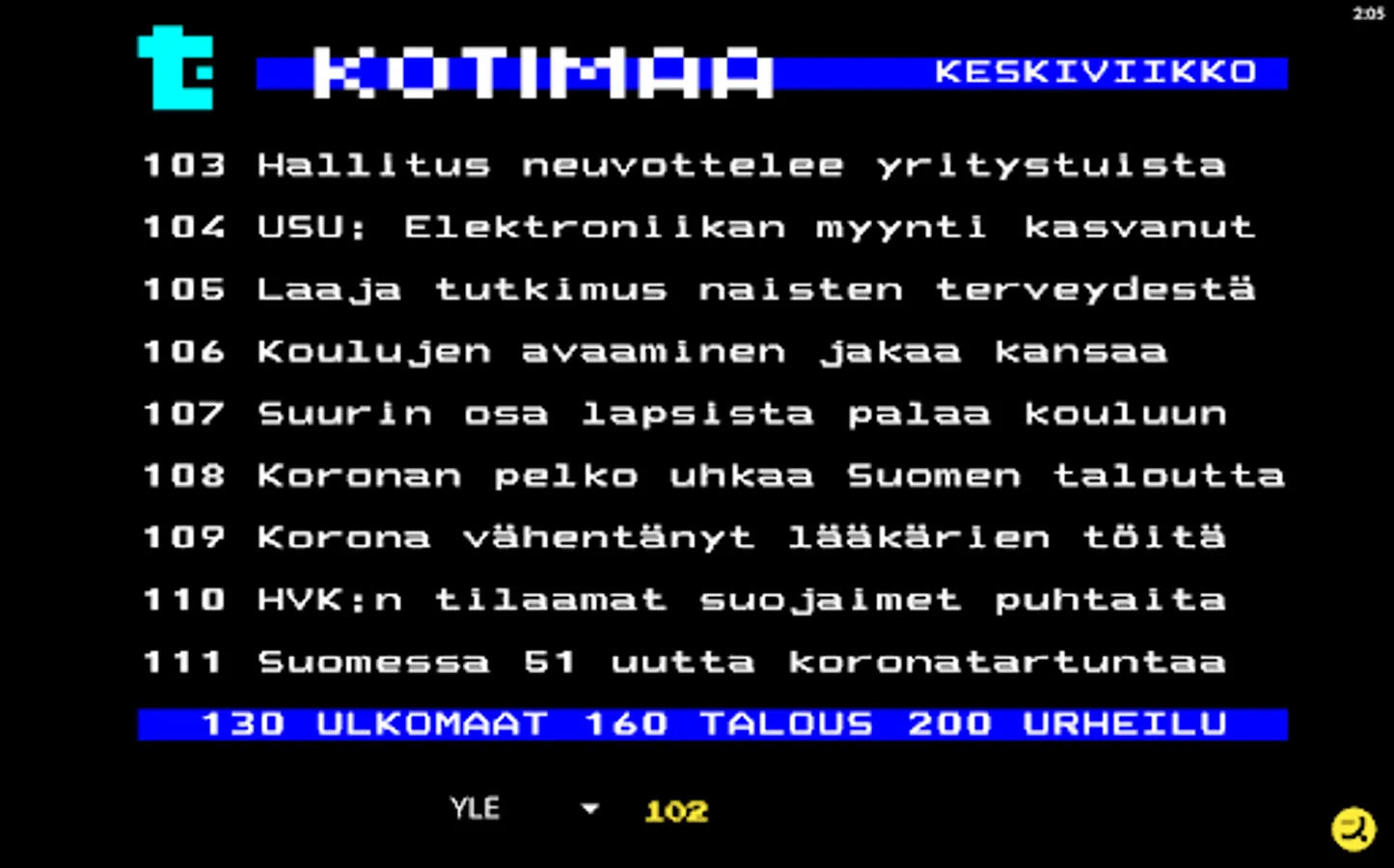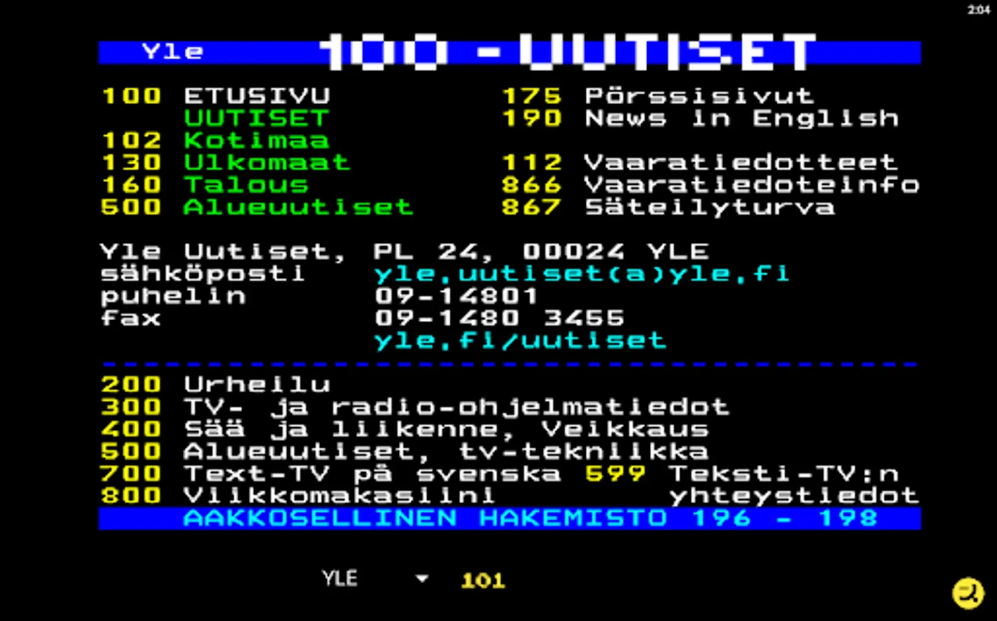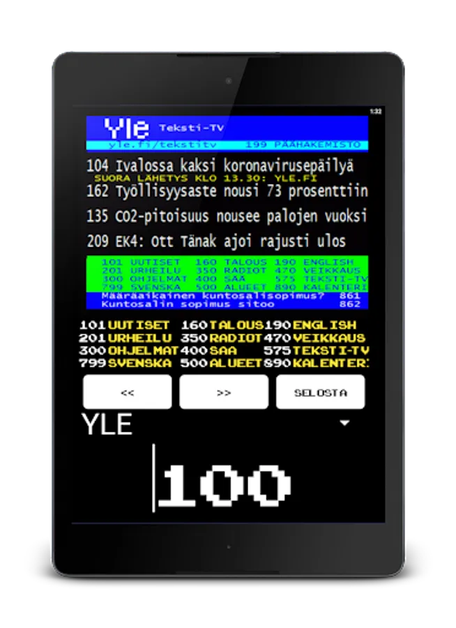 Download the easy-to-use and completely free text TV app and start your uncomplicated Textsv browsing now right away. The look of TekstiTV consciously follows and respects the classic teletext nature familiar to everyone with its retro style.