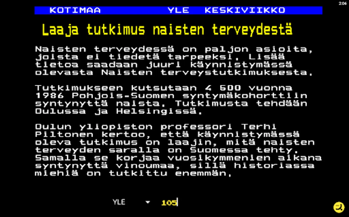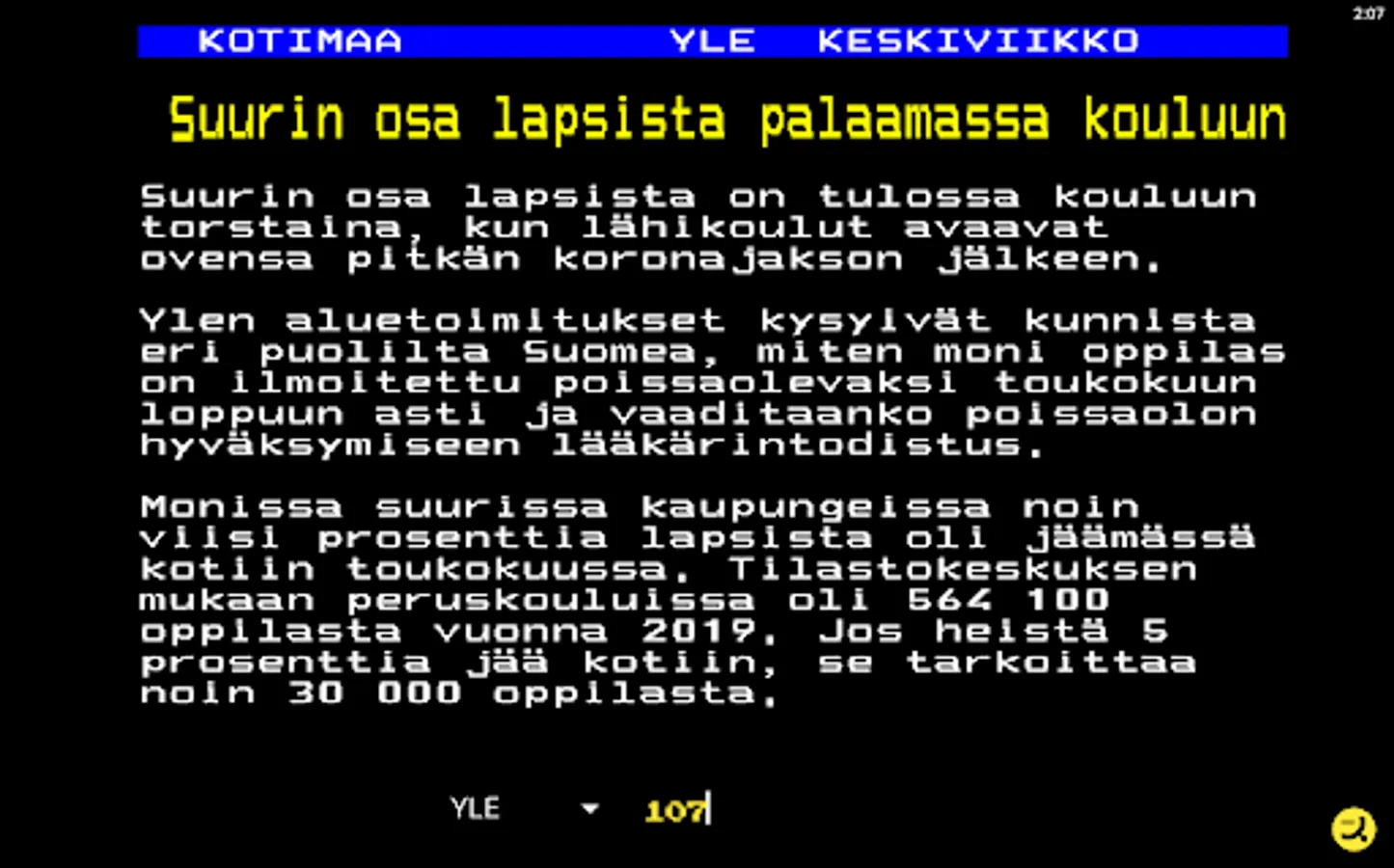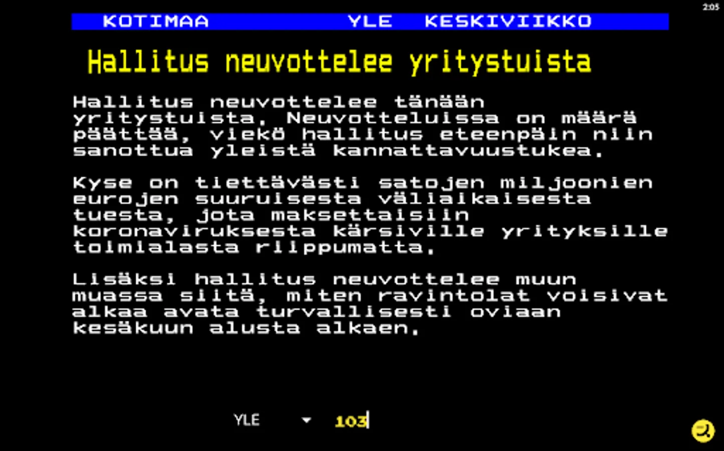 Download the easy-to-use and completely free text TV app and start your uncomplicated Textsv browsing now right away. The look of TekstiTV consciously follows and respects the classic teletext nature familiar to everyone with its retro style.