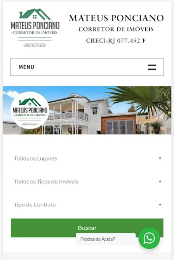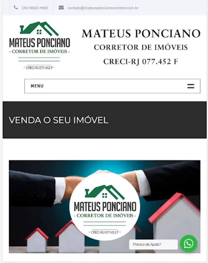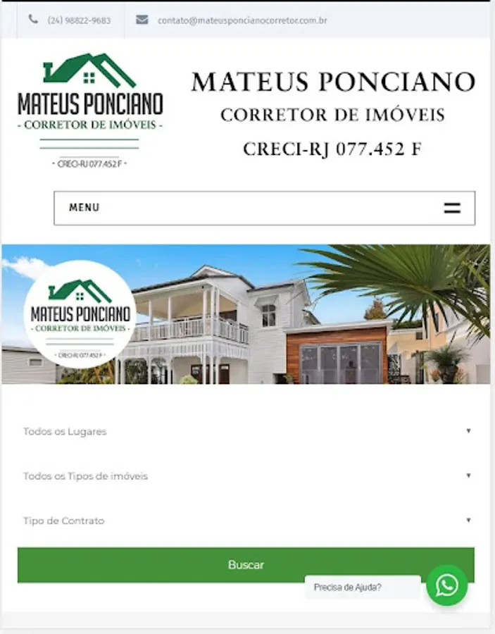 Mateus Ponciano Corretor de Imóveis CRECI-RJ 077.452 F is specialized in real estate transactions, being able to provide you with a great service and help in the realization of your dream.