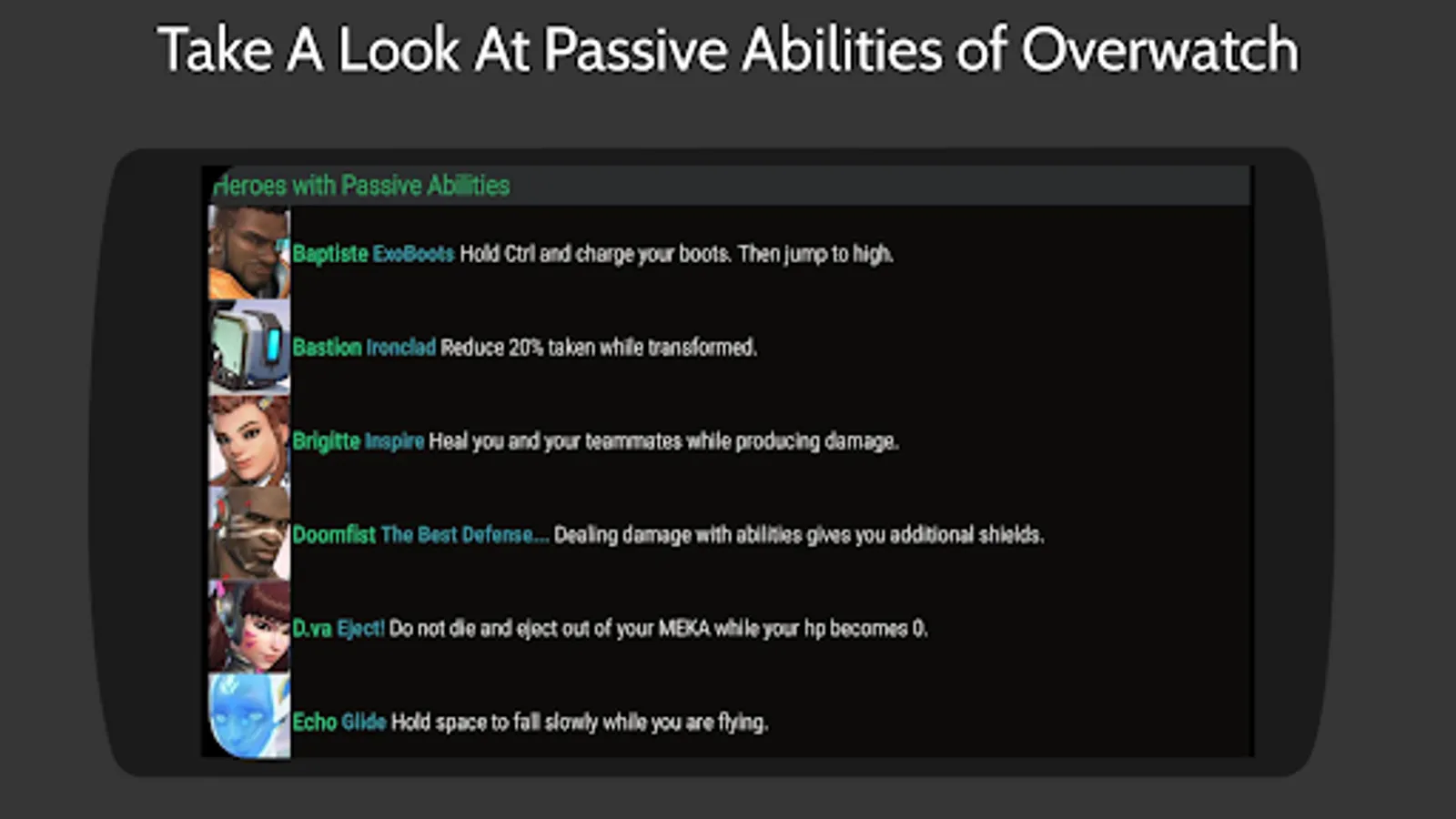 With this application, you can try all 32 Overwatch heroes' abilities on your phone. Try our application now and preview your favorite hero while you are not at computer.