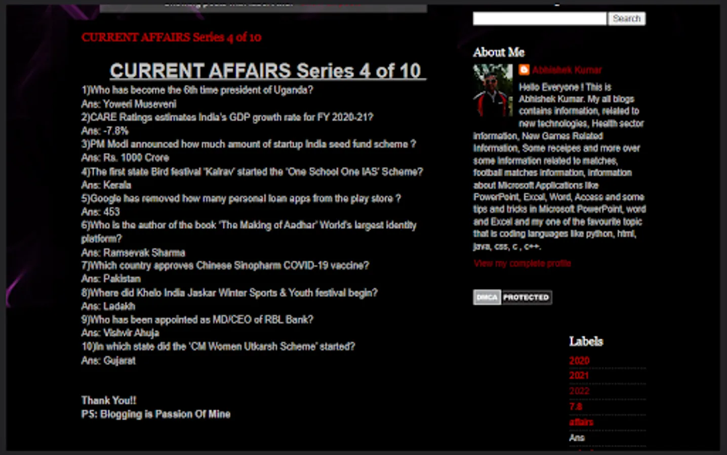 The blog BUA stands for Being Updated By Abhishek. It is all about the latest General Knowledge and Current Affairs in Hindi and English. You can read the general knowledge and the current gk in Hindi. State-wise gk, current gk, geography gk, politics gk, and other static general knowledge questions and answers are posted here on a daily basis. We hope BUA will be your best bet for knowledge. Keep learning!