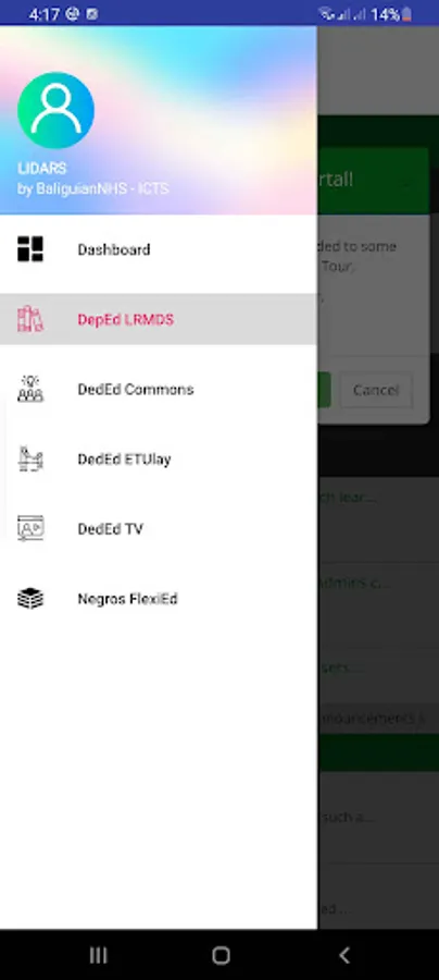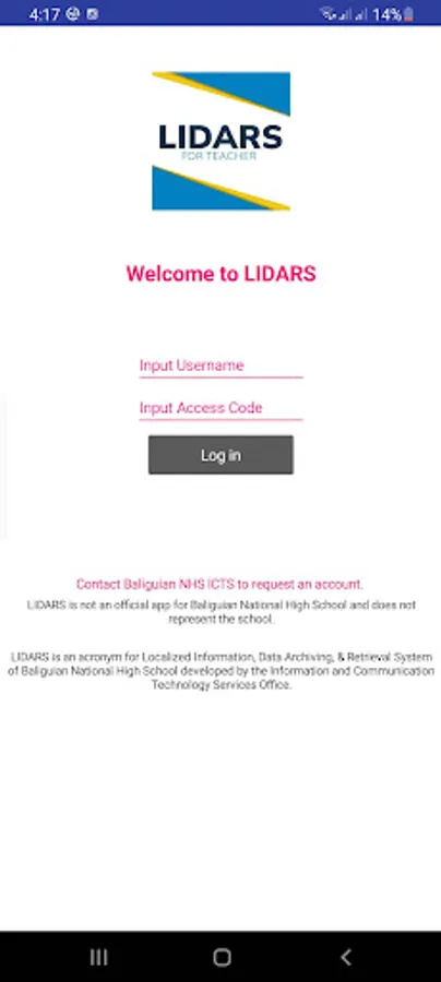LIDARS is an acronym for Localized Information, Data Archiving, & Retrieval System developed by the Baliguian National High School Information and Communication Technologies Services.