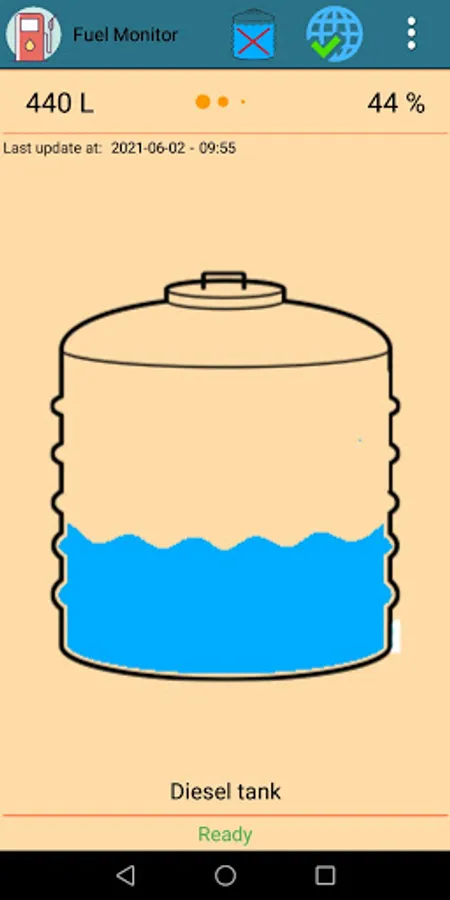 * This application receives the fluid level and all data values over the Wi-Fi link. It needs an active internet connection between phone and router.