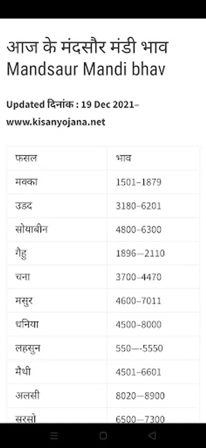 Mandsaur Mandi bhav Hello farmer brothers and welcome to Kisanyojana.net Kisan Yojana, today in this post we will give you information about the market price of Mandsaur mandi of Madhya Pradesh in which maize, wheat, soybean, gram, blown, coriander, garlic, fenugreek, cotton We will provide information about the price of all crops etc. “Agriculture Upaj Mandi Mandsaur”