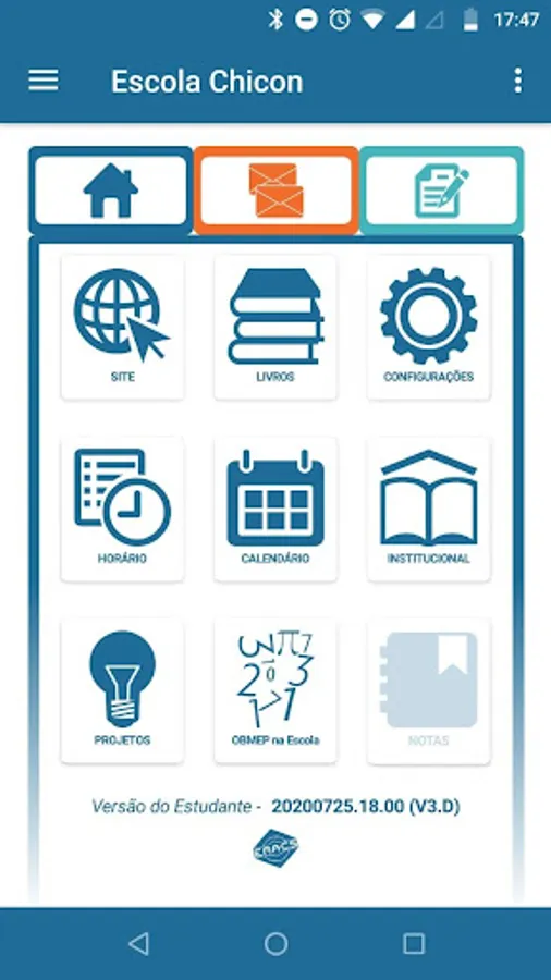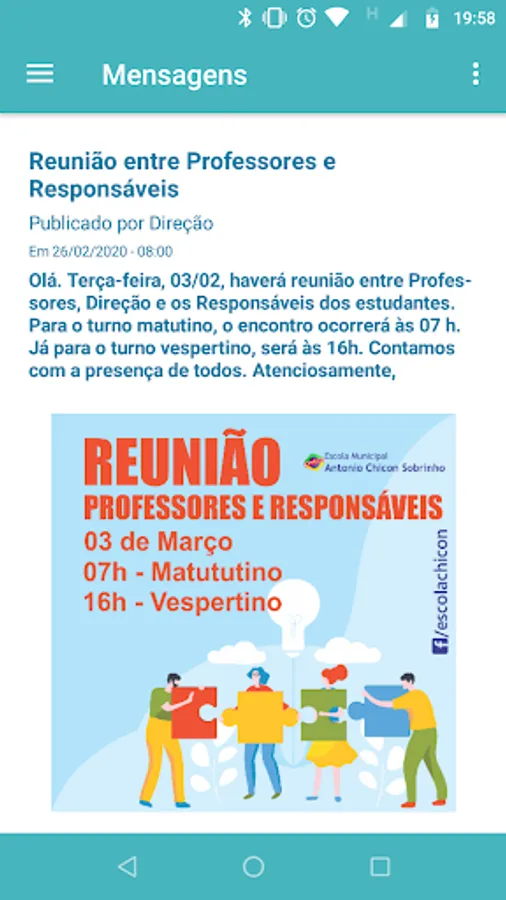 Application developed for Antonio Chicon Sobrinho Municipal School, Teixeira de Freitas, Bahia, as a messaging tool and immediate notification to students' responsible.