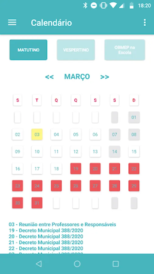 It is also possible to consult the schedule of classes, the calendar of activities and projects, as well as scheduled evaluations and holidays.