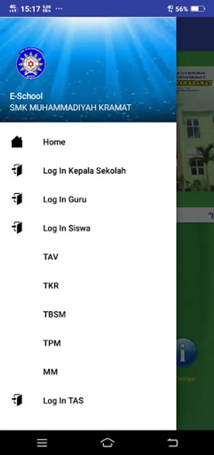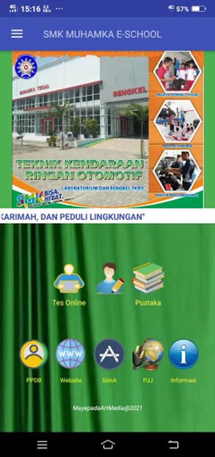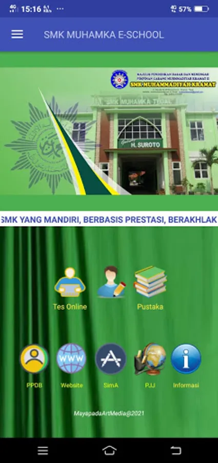 Application that contains various information of SMK Muhammadiyah Kramat, such as E Learning, E Raport, E Nil, Online Attendance, Online Test, etc.