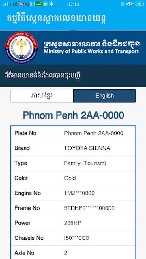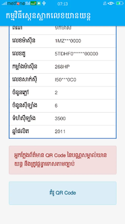 This program can scan all kinds of license plates with QR code to check the various data of your vehicle.