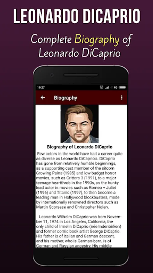 Leonardo DiCaprio is one of the most successful American actors in Hollywood and film producer. He was an award-winning actor who won Academy Awards, Golden Globe Awards and more. In this app, you can find out the quotes of this great actor.