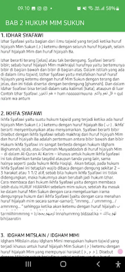 Tajwid Mobile is an Islamic educational application designed to help users learn Tajweed easily and effectively. With an intuitive interface and quality content, this application is a loyal friend for anyone who wants to improve their ability to read the Koran properly and correctly.