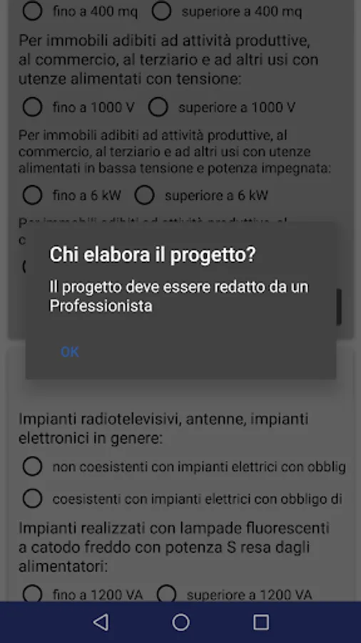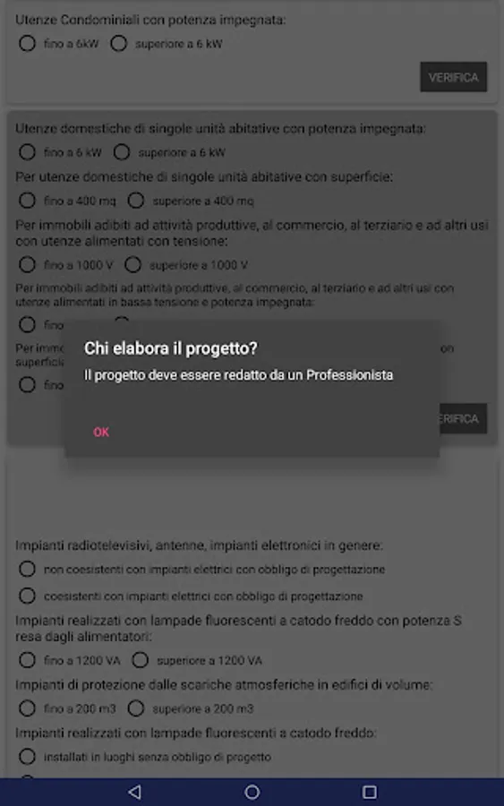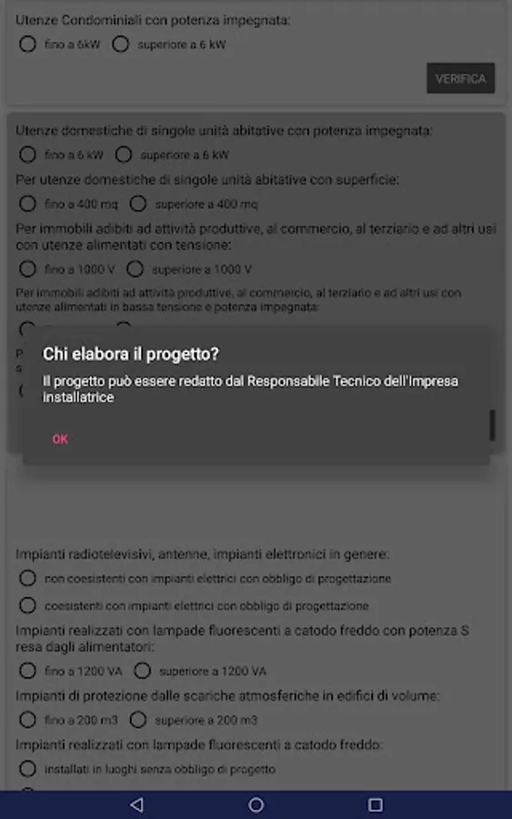 With this simple APP it will be possible in a fast way to establish when there is an obligation to produce the project of the electrical system or the GAS adduction system.