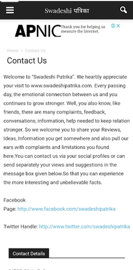 Swadeshi Patrika is your Education News, Entertainment, Beauty and some useful contents application. We provide you with the latest breaking news about INDIAN TRADITION, Freedom Fighters, The truth behind different POLITICIANS, Famous People, Rajiv Dixit’s thoughts and their perspectives. Swadeshi Patrika, started in 2012 as a Facebook page, became a prestigious website in 2016 and from then on has been steadily growing on the views and good suggestions of the visitors on Facebook page which has good fan following nearly 21,423 likes and followers and after it is started as a website the visitors show their faith due to its valuable contents which helps them in different ways. Somehow in our life, we’re all educators and we all are students, so our idea is simple to learn and to en-light by the means of valuable news and information available on the inter webs. We don’t believe in providing fake information or outdated contents like some other are doing. Team Swadeshi Patrika is an attempt to question the always-lying-system that has evolved over time. We don’t believe in rhetoric, We believe in facts. We aren’t working for publicity.