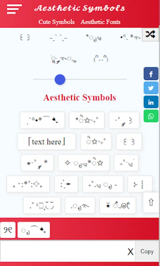 Aesthetic symbols are visual representations, such as icons or emojis, that are used to convey a feeling or mood. They can be used to add a creative or artistic flair to text, images, and other forms of media. They are often used on social media platforms, in design work, and in other forms of digital communication. Aesthetic symbols can include a wide range of elements such as hand-drawn illustrations, typography, and photographic elements. They are used to create a cohesive and visually pleasing look and feel, and to convey a specific emotion or message to the viewer.