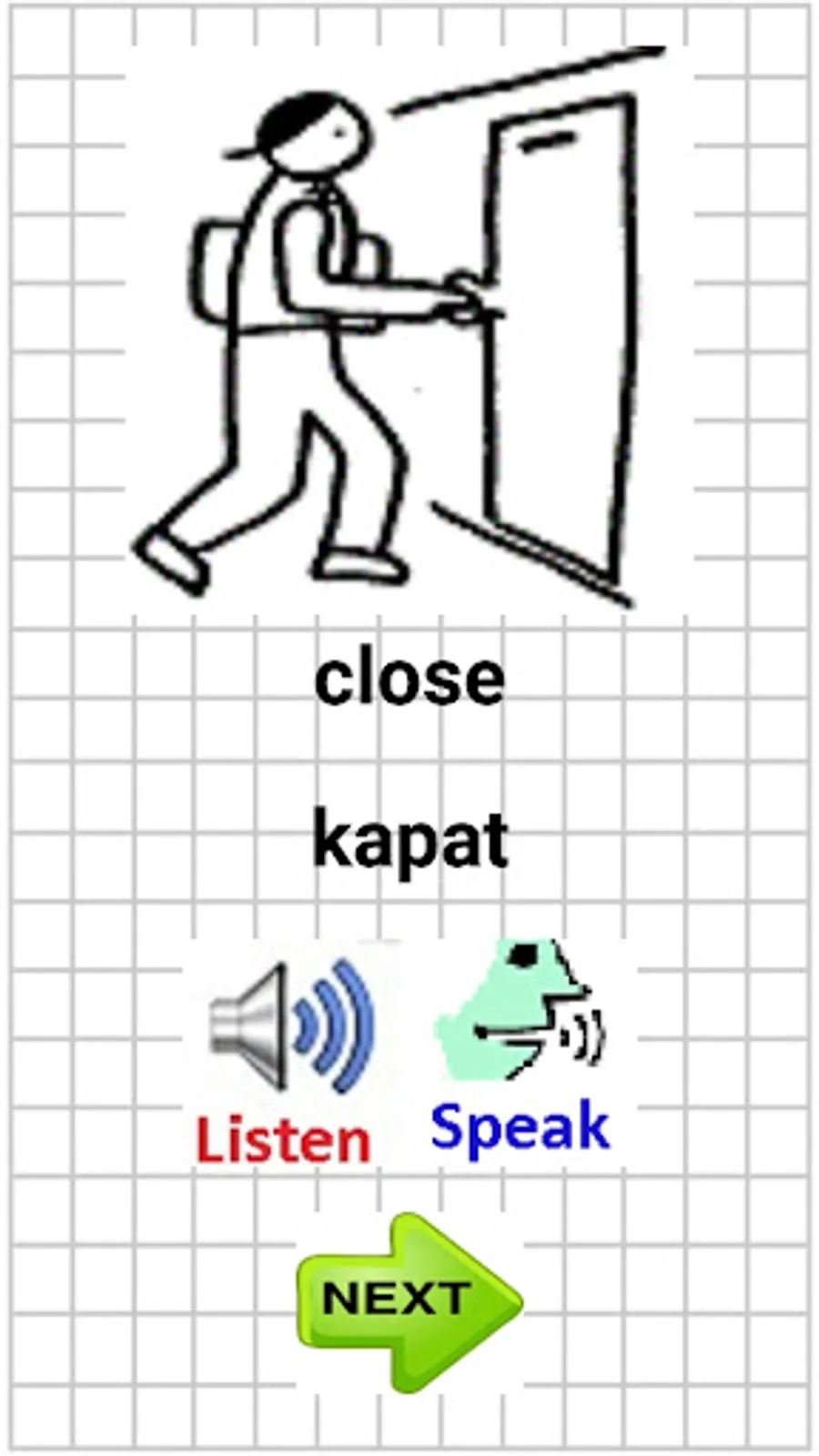 It consists of 4 parts: learning, matching, word finding and testing. Trying to speak the words is optional. Some words are difficult to pronounce.