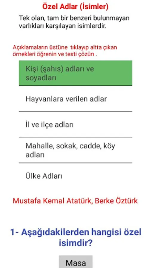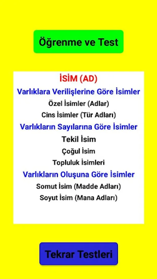 The application consists of three parts. In the first part, there are 100 nouns and 100 test questions, in the second part, adjectives and 100 test questions, in the third part there are pronouns and 50 test questions. The application is easy to use. The button color of the correct solution changes, making it easy for you to follow and your child knows where you are staying. The student does not get bored because each test consists of 5 questions.