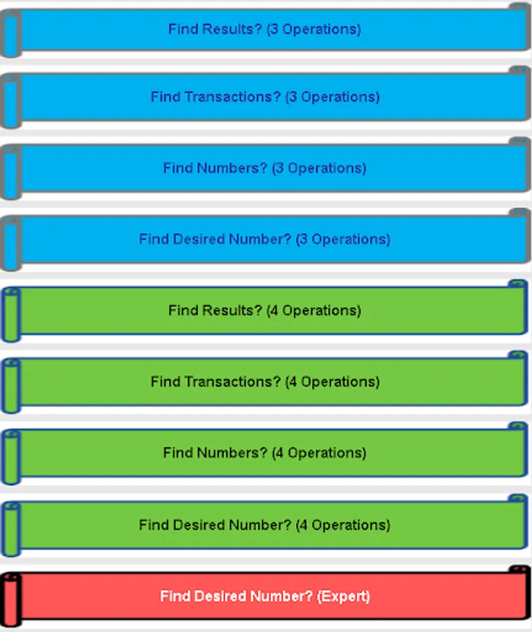Chapters 4 and 8: Find the numbers. In order to find the desired number in these sections, the numbers are filled in appropriately, the results are written and the arrow key is pressed.