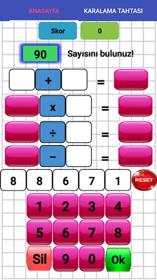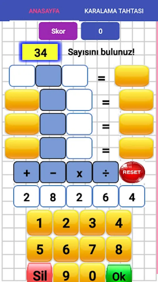 5.,9. And the 9th Section: In these sections, the desired number is tried to be found by using operations and numbers. In Chapters 5 and 10, operations and numbers can be used once. In chapter 9, numbers can be used once, and the same operations can be used as many times as desired.