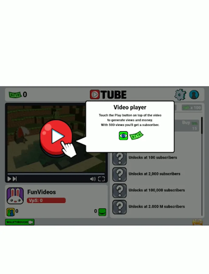 In conclusion, Tube Idle Clicker is a captivating fusion of the idle clicker and YouTube worlds. It offers a unique and addictive gaming experience that immerses players in the thrilling journey of content creation and channel growth. With its intuitive interface, challenging obstacles, and a deep progression system, the game keeps players engaged and entertained for hours on end. Whether you're a seasoned You tuber or just curious about the platform, Tube Idle clicker is the perfect way to experience the excitement of YouTube stardom in the palm of your hand. So, why wait? Click on the play button and watch your virtual You tube empire flourish. Enjoy your day and happy creating!