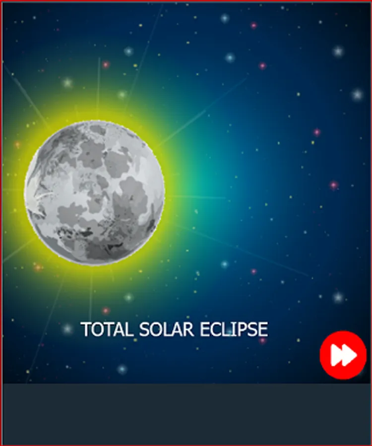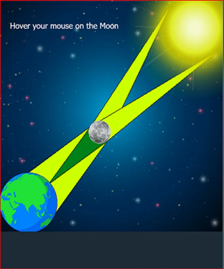 This is a solar eclipse simulation, this app will help you know more about solar eclipse umbra and penumbra, after clicking on the red arrow tap on the moon. I hope you will gain knowledge from this app, please comment and like.