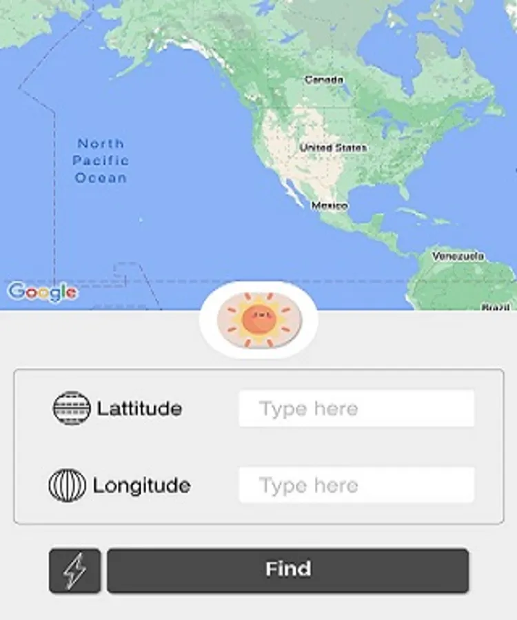 In this app, you can find the weather of your city by putting the longitude and latitude values, and then you have to click on the find button it will show you your weather if it is sunny it will show a picture of the sun.