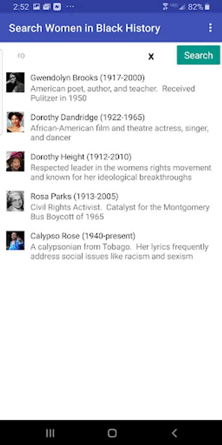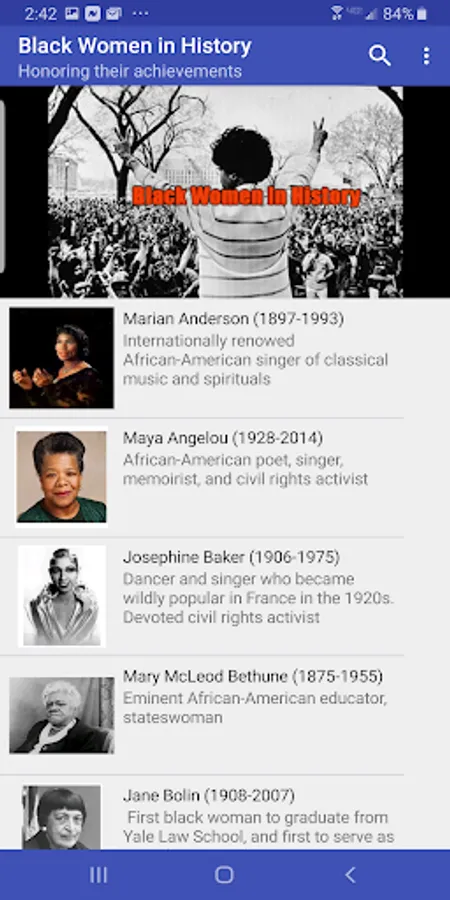 The app contains photos, biographies and YouTube videos which depict their noteworthy accomplishments. It also contains a Search feature.