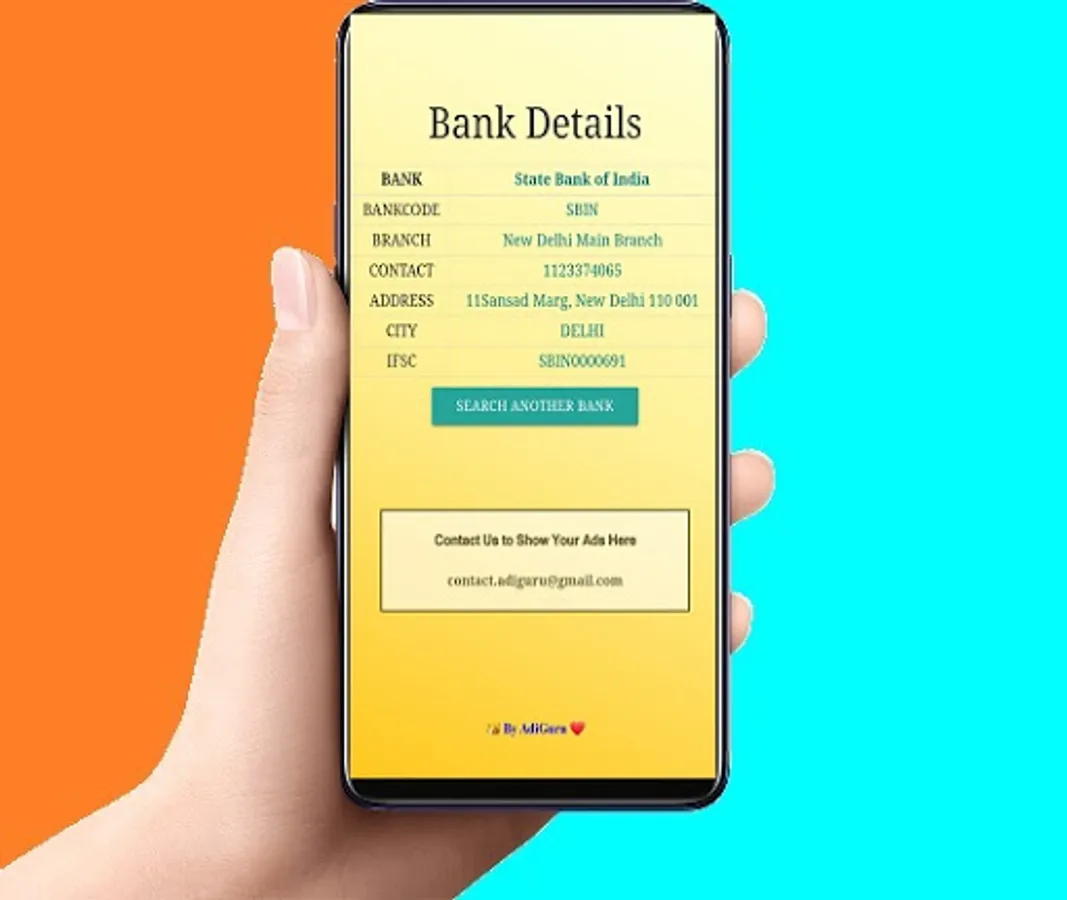 Welcome to FIND ANY BANK DETAILS. Just type the IFSC Code of the Bank and get all the details like full postal address, phone number etc. Now finding any Bank is just so easy, Thanks to Find Any Bank Details. Download the app now for FREE.